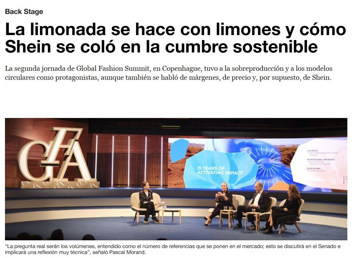 The second day of the Global Fashion Summit in Copenhagen focused on sustainability, circular business models, and overproduction, with critiques of the fashion industry's current practices, including Shein's business model. Speakers emphasized the need for transformative change in the industry, highlighting circularity, creativity, and new regulations, while acknowledging challenges like reduced margins and increased complexity. The French government’s anti-Shein law, aimed at fast fashion regulation, and the call for companies to adapt to new market trends, were key topics discussed.