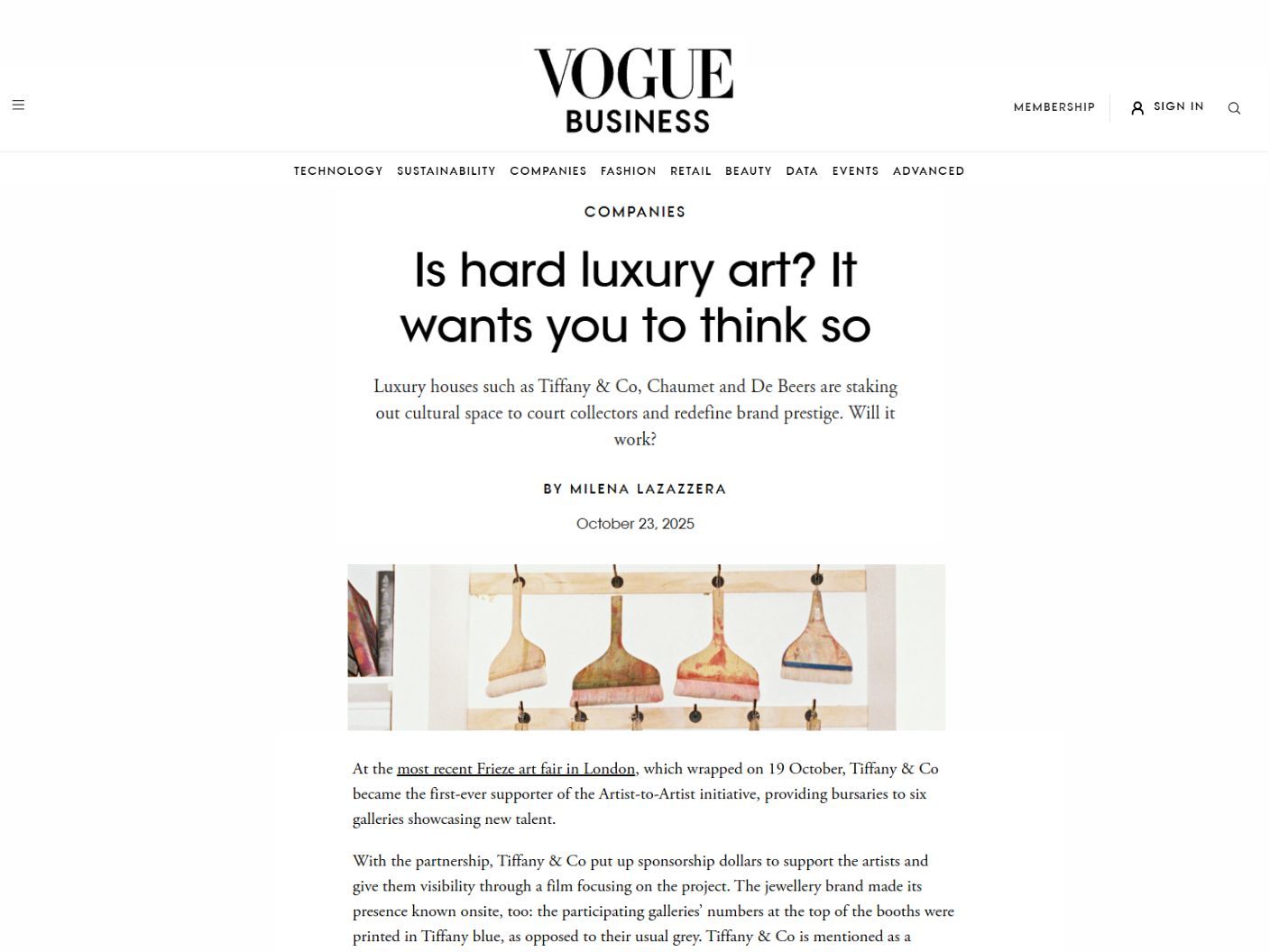 Vogue Business by Milena LazazzeraAchim comments on the surge of luxury jewelry investing in and partnering with the art world, deepening the intersection between the two.