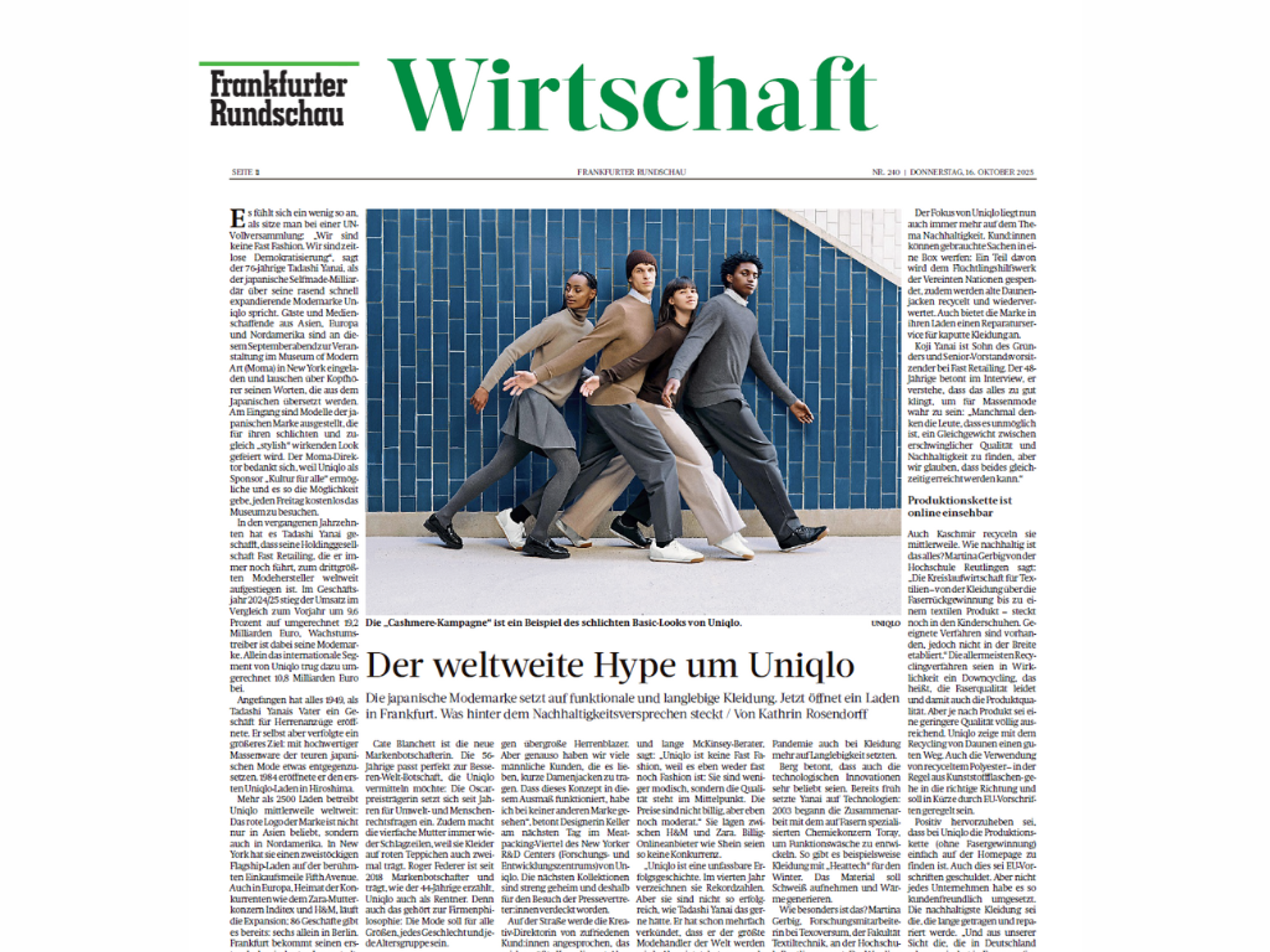Frankfurter Rundschau by Kathrin RosendorffAchim dissects Uniqlo’s success, positioning it as a considered alternative to the fast fashion paradigm.