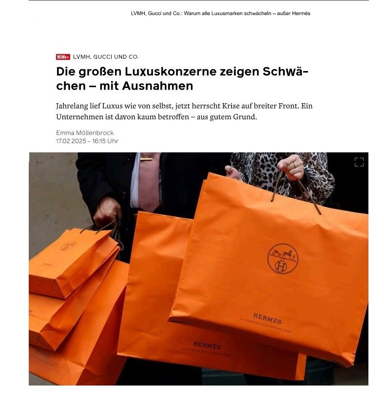 - press May 2025 - Those who choose to wait gladly pay moreDie Zeit by Jennifer Wuchner- Achim reflects on why Hermès continues to thrive amid a broader luxury downturn. - While most luxury brands are reporting sharp revenue declines, Hermès remains one of the few brands still growing, thanks to a model based on exclusivity and controlled scarcity. With highly limited production and years-long waiting lists, the brand's desirability continues to grow. Unlike other luxury houses that have begun to expand their product lines to reach a broader audience and raised prices too aggressively, Achim notes that this strategy of artificial scarcity is what sets Hermès apart. In his view, chasing volume through entry-level segments won't solve the crisis, as the real money is still made in handbags, where margins are highest.