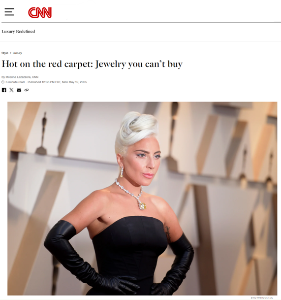 - press May 2025 - Hot on the red carpet: Jewelry you can’t buyCNN by Milena Lazazzera- Achim comments on how red carpet exposure of rare jewelry drives brand value - Many luxury brands started to display rare archival jewelry from private collections and museums by loaning these exclusive pieces to celebrities for red carpet events. This strategy transforms high-profile events into cultural treasure hunts, emphasizing the timelessness and heritage of these pieces. Achim notes that this strategy simultaneously boosts sales of the brand's jewelry that can be purchased by generating brand trust and higher visibility. By presenting their historical jewels as living legacies rather than static museum objects, brands generate excitement and deepen brand engagement. Achim sees this as a powerful way to reinforce the value and relevance of jewelry, positioning it as a lasting investment with enduring creative and cultural significance.