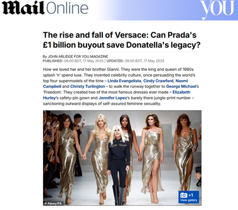 - press May 2025 - The rise and fall of Versace: Can Prada’s £1 billion buyout ...Daily Mail You Magazine by John Arlidge- Achim shares his perspective on what is next for Versace after its acquisition by Prada Group. - With strong brand equity and a globally recognized identity, the foundations for Versace's new era are in place and Prada is a fitting new owner to build on. The Group brings cultural alignment, capital to invest, and strong product and marketing expertise. But structural change will be key, Achim notes. Versace's huge retail footprint doesn't match its current sales. He emphasizes the need to rethink its store strategy - possibly swapping some locations with Miu Miu - and anticipates leadership changes between Versace and Prada executives. These moves will set the stage for a broader creative and commercial reset. If executed well, Achim predicts significant sales growth in the coming years.