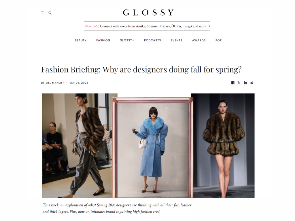 - press September 2025 - Fashion Briefing: Why are designers doing fall for spring?Glossy by Jill Manoff- Achim sheds light on why designers’ spring collections are leaning towards fall fashion. - During the recent Spring/Summer 2026 Fashion Weeks, it was notable that designers deviated from the designated season and showcased a variety of cold-weather items and materials. With many new creative directors making their debut, Achim notes that brands are trying to strike a balance between embracing newness and playing it safe in an uncertain macroeconomic climate, often favoring more conventional pieces. He adds that this more cautious approach best reflects current consumer sentiment, and that fall-inspired fashion feels more intuitive as many regions head into winter. Achim further shares his thoughts on the current luxury downturn and gives an outlook on how long the situation might persist.