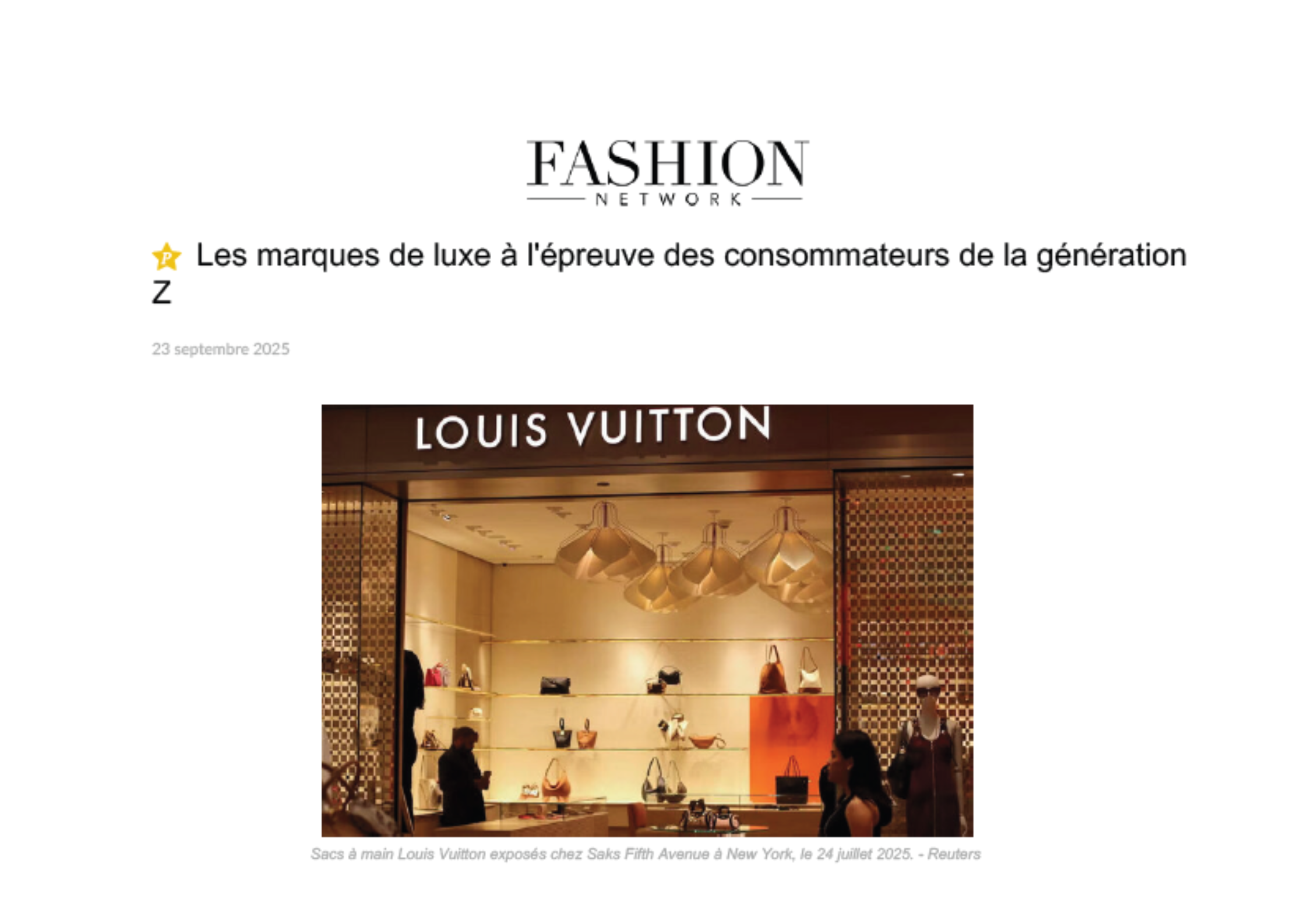 - press September 2025 - Luxury brands put to the test by Gen ZFashion Network by Sami Marshak- Achim explains how luxury brands successfully attract Gen Z. - Gen Z consumers are set to account for an increasingly significant share of luxury sales, yet they are proving to be more difficult for brands to engage with than previous generations. While some heritage houses and newcomershave learned how to connect with this audience, others are struggling to keep pace. According to Achim, brands that resonate with Gen Z offer standout pieces that encapsulate their identity, enabling young consumers to buy into the brand without investing in a full look.