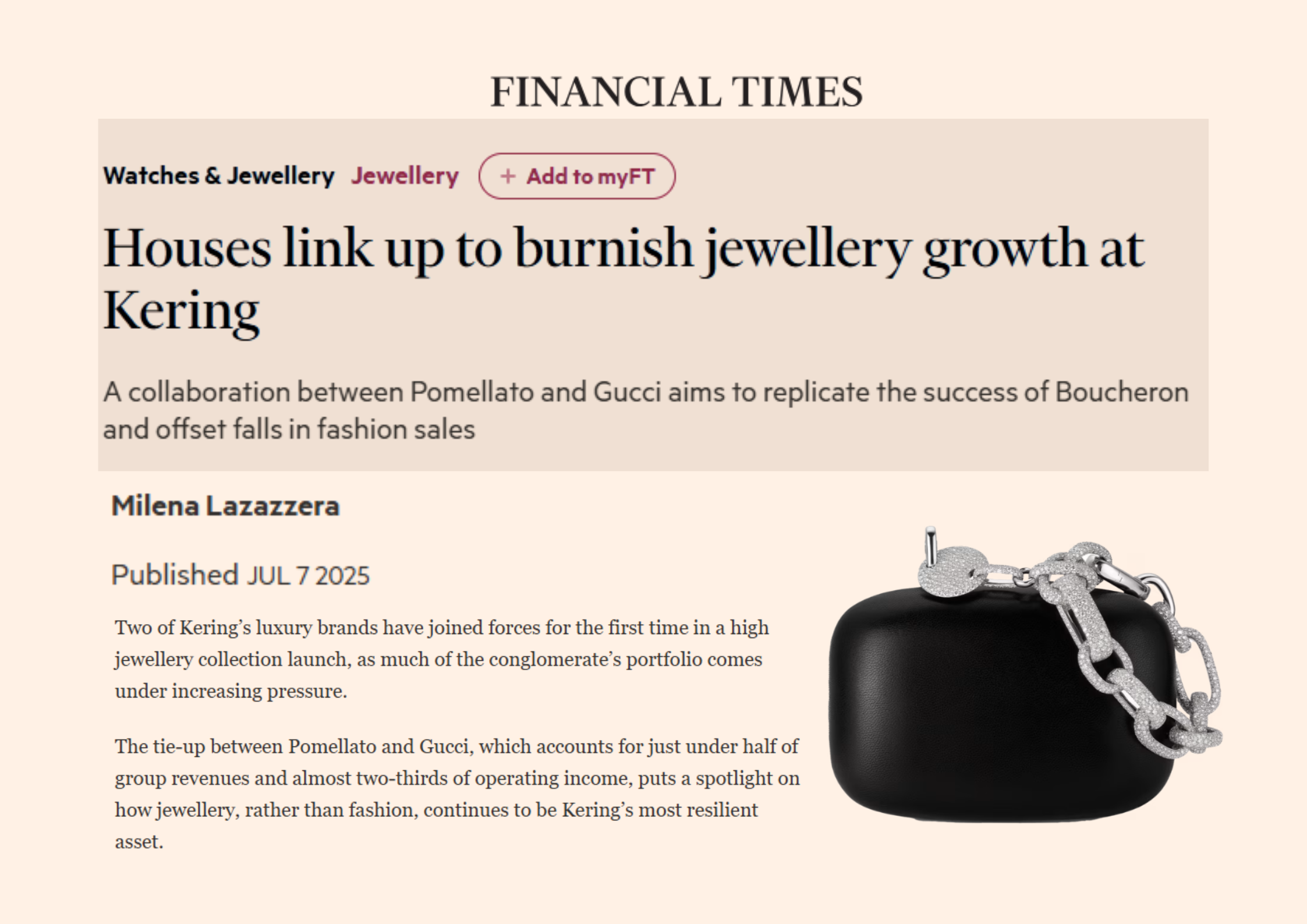Financial Times by Milena LazazzeraAchim comments on the Gucci-Pomellato collaboration, viewing it as a smart way for Kering to navigate the current environment.